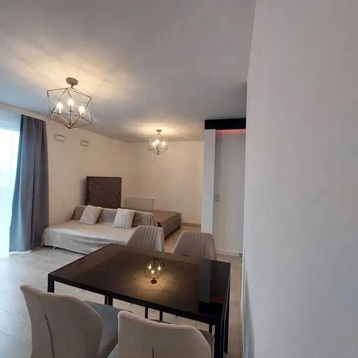 Salon – jasny i przestronny, z wydzieloną strefą dzienną i sypialnianą. Wyposażony m.in. w łóżko z pojemnikiem, stół z krzesłami, dwie wygodne sofy, dużą szafę przesuwną i komodę.