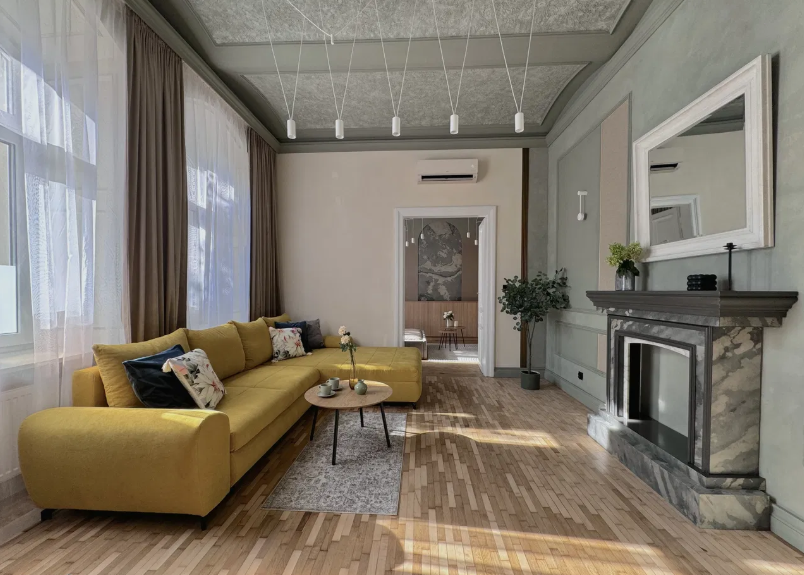 W wysokim standardzie wykończenia, przeznaczony zarówno na cele mieszkalne, jak i idealny do prowadzenia działalności gospodarczej — kancelarii prawnej, notarialnej, biura projektowego czy gabinetu. Wysokość pomieszczeń: 3,7 m, z przysufitowym oświetleniem LED, co nadaje przestrzeni elegancji i wyjątkowego charakteru. Klimatyzacja (2 jednostki) dla pełnego komfortu, nowoczesne ogrzewanie gazowe – dwufunkcyjny piec z zamkniętą komorą spalania, ogrzewanie podłogowe w kuchni i łazience. Wymienione wszystkie instalacje oraz okna. Hol z aneksem kuchennym – z możliwością całkowitego ukrycia kuchni za drzwiami przesuwnymi (idealne rozwiązanie w przypadku użytkowania biurowego) Łazienka z kabiną prysznicową i podgrzewaną podłogą