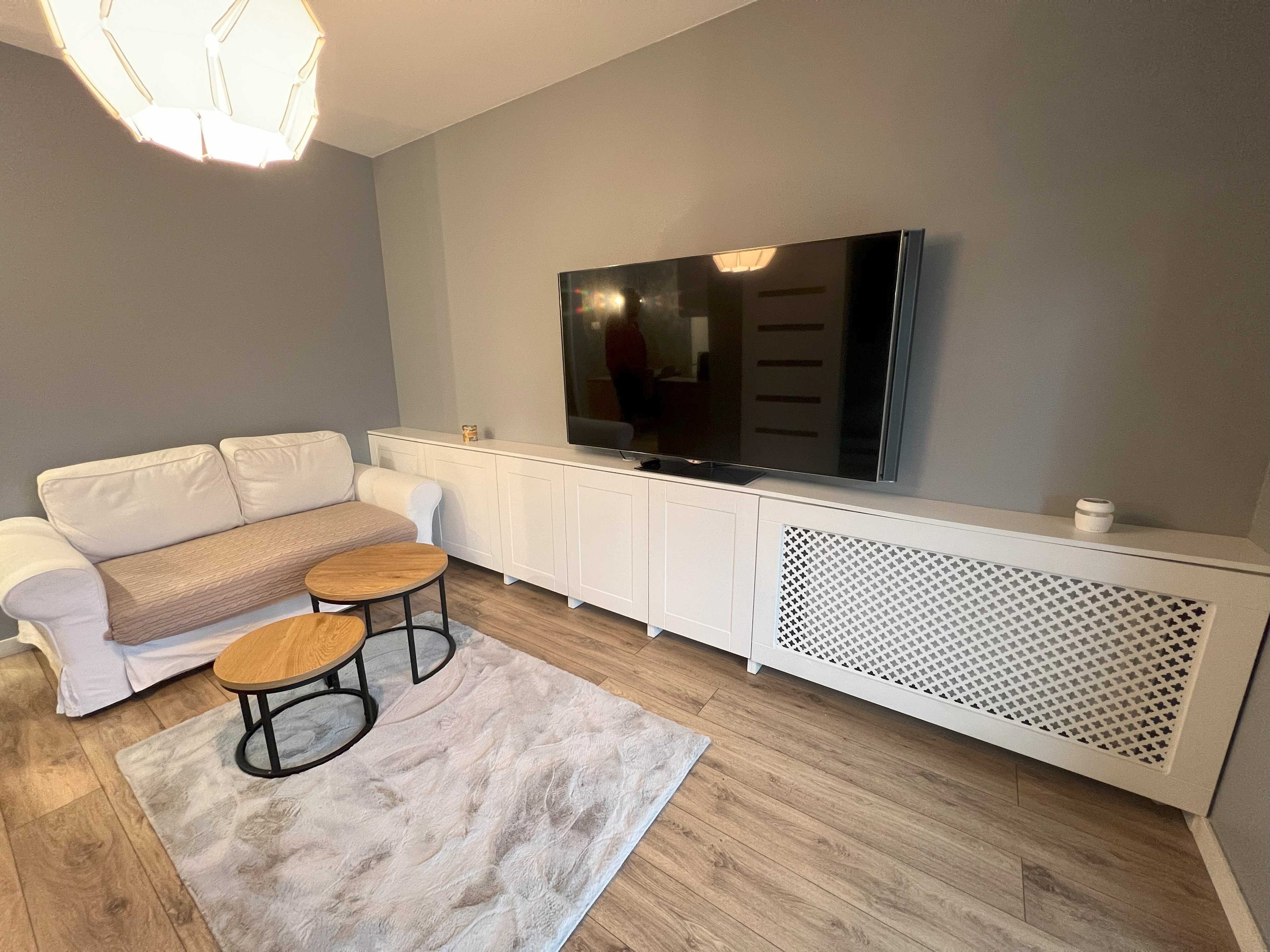 - pełnowymiarowa lodówka, piekarnik, płyta indukcyjna, zabudowana kuchenka mikrofalowa,
