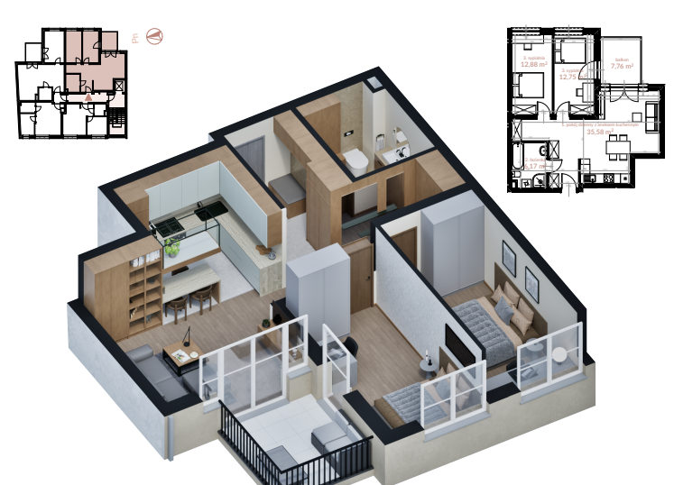 • Balkony i przestronne tarasy wykończone płytkami gresowymi na podkładkach, Internet światłowodowy, wideodomofony, system monitoringu.