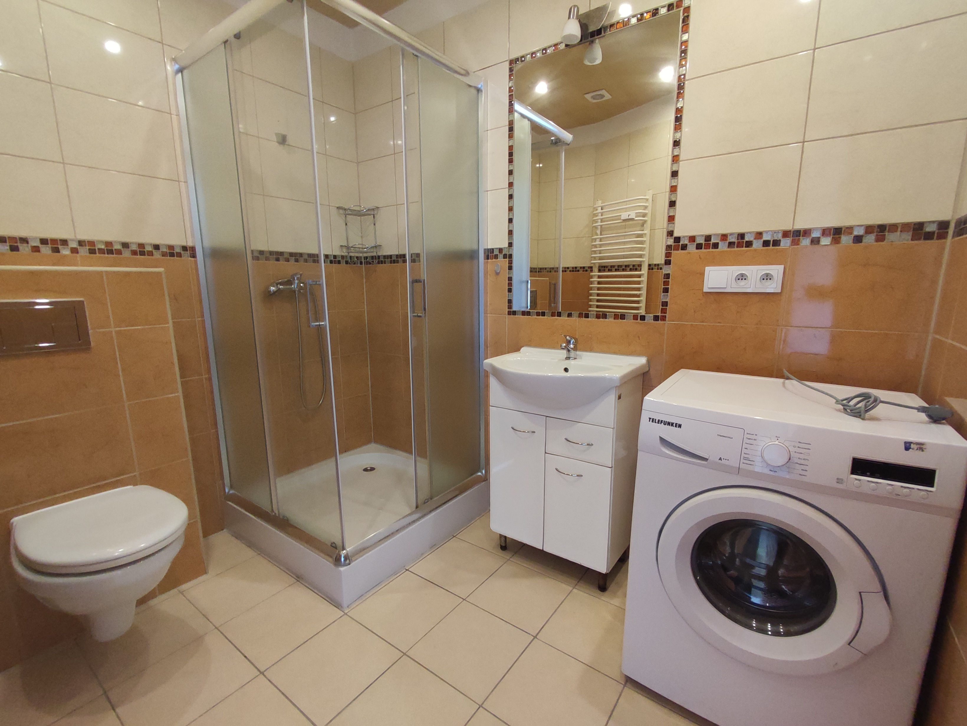 Mieszkanie położone jest na parterze. Na powierzchnię 35 m2 składa się pokój dzienny z aneksem kuchennym, sypialnia oraz łazienka z kabiną prysznicową oraz wc