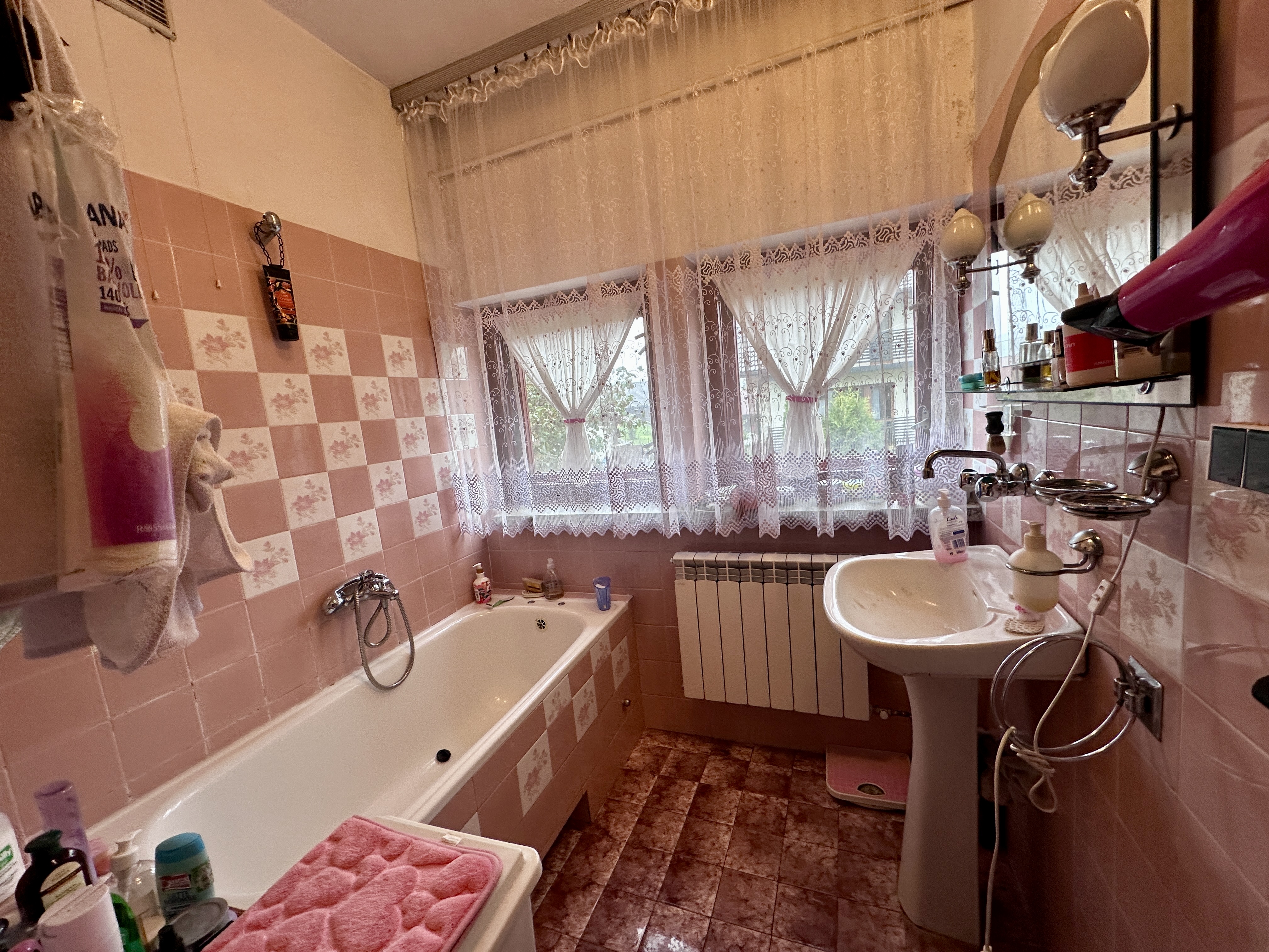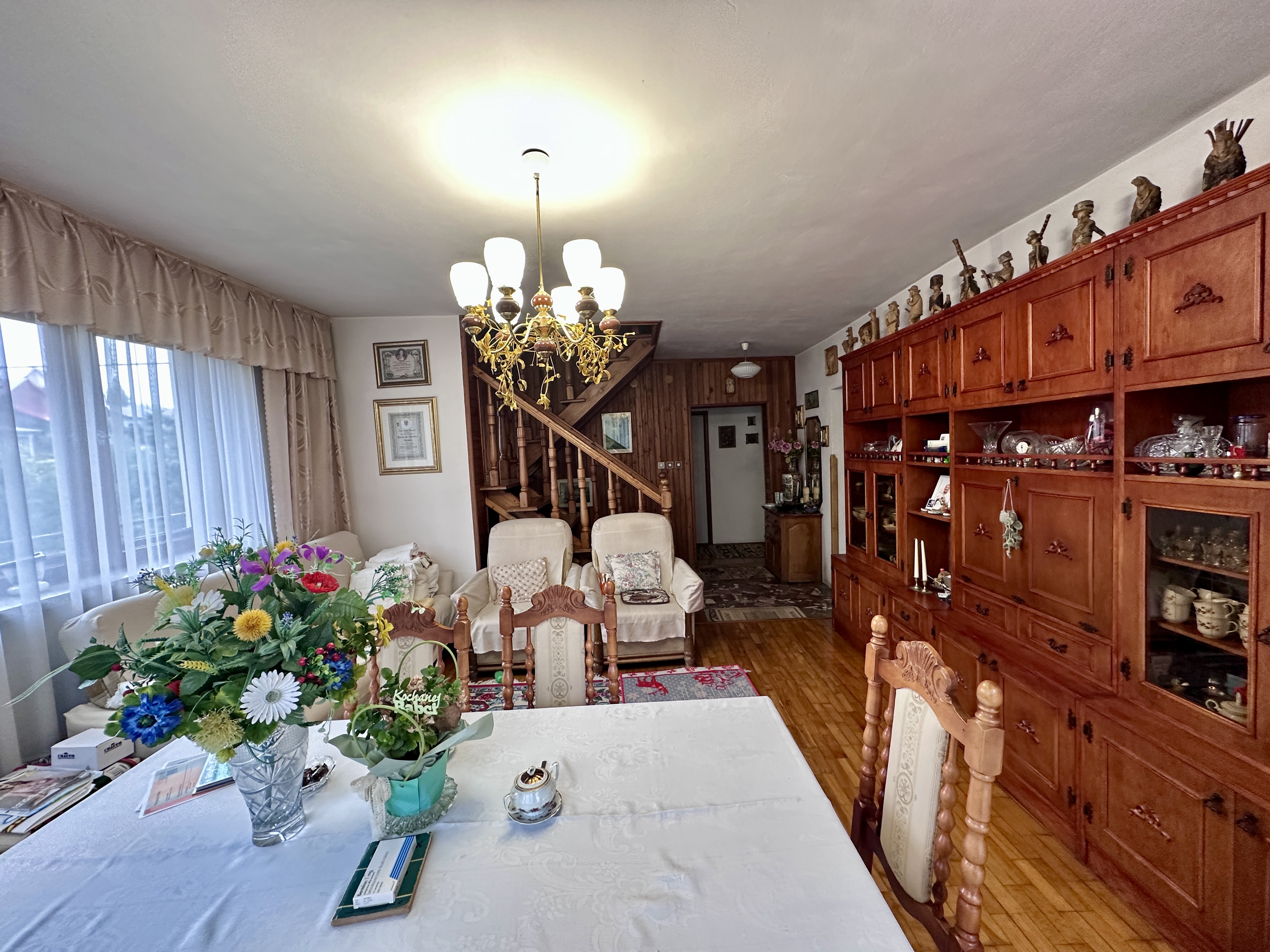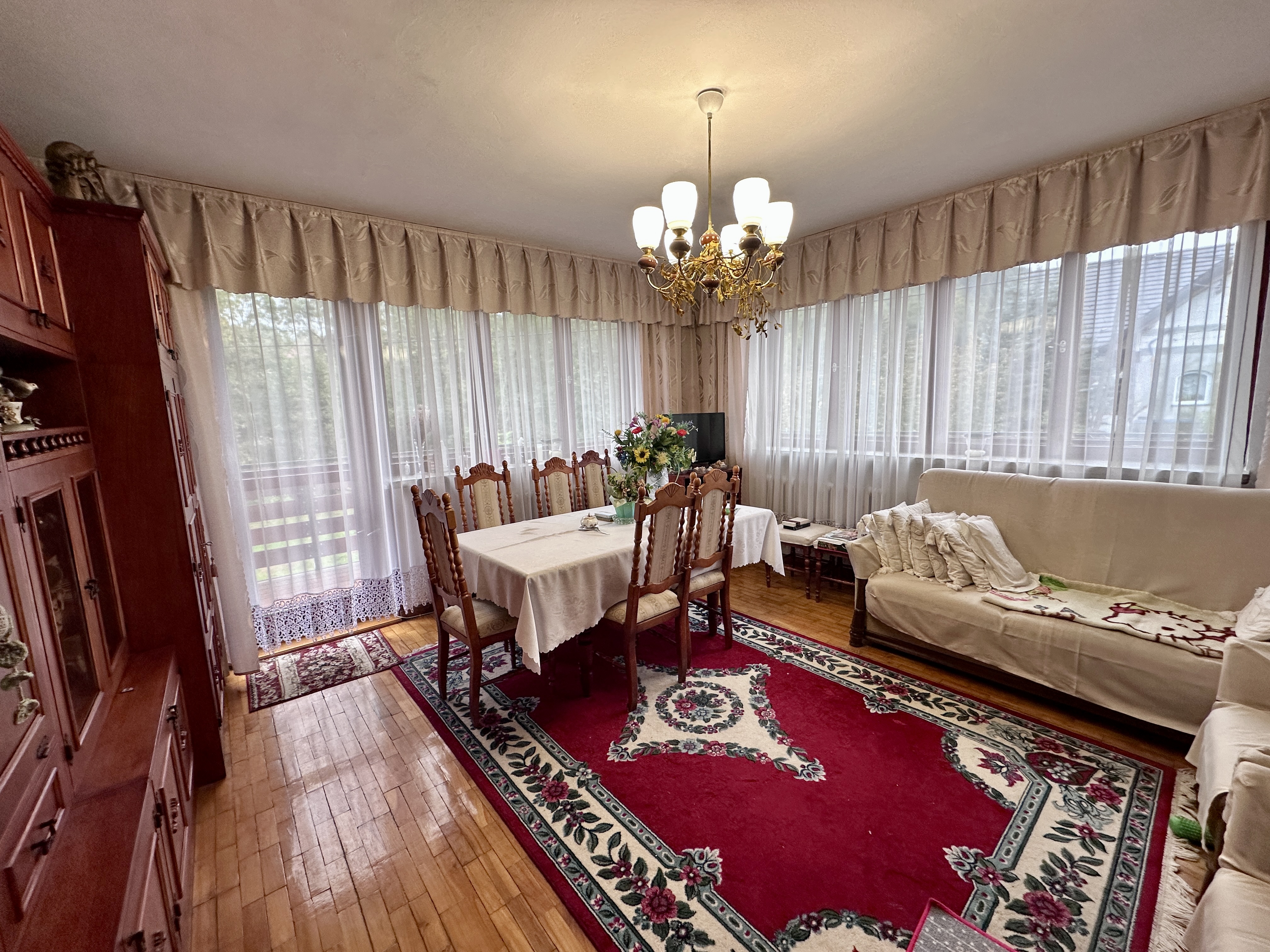 Dom o powierzchni całkowitej ok. 160 m² , użytkowej ok. 125 m²,niepodpiwniczony, wybudowany w latach 80 systemem tradycyjnym w systemie wielowarstwowym z pustaka, konstrukcja ta pozwala na lepszą termoizolację budynku, obłożony estetycznym kamieniem naturalnym, okna do domu podwójne drewniane , dach ocieplony wełną mineralną pokryty blachą, na podłogach deski natomiast w kuchni i łazience zastosowano płytki.