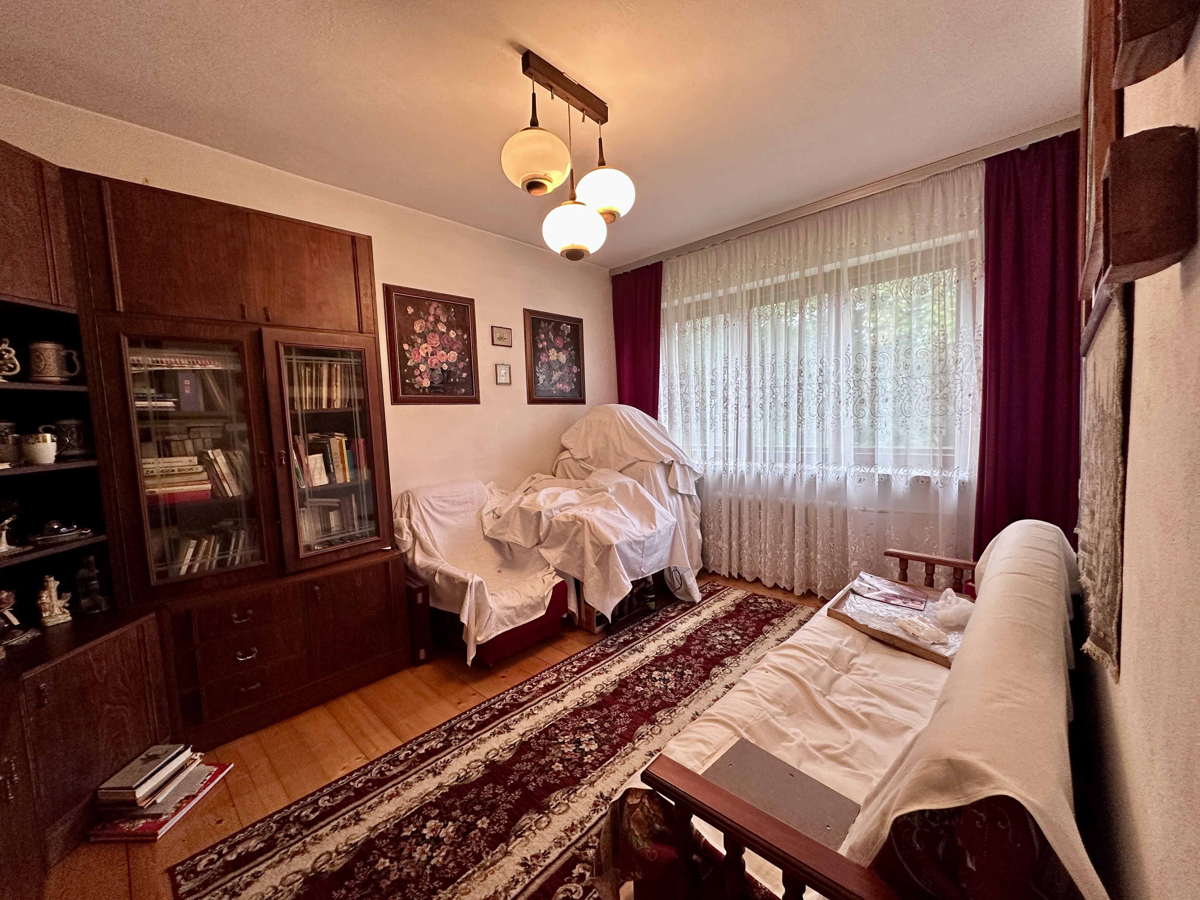 Parter: salon z wyjściem na duży balkon , kuchnia wraz ze spiżarką, łazienka z wanną , dwa pokoje w tym sypialnia