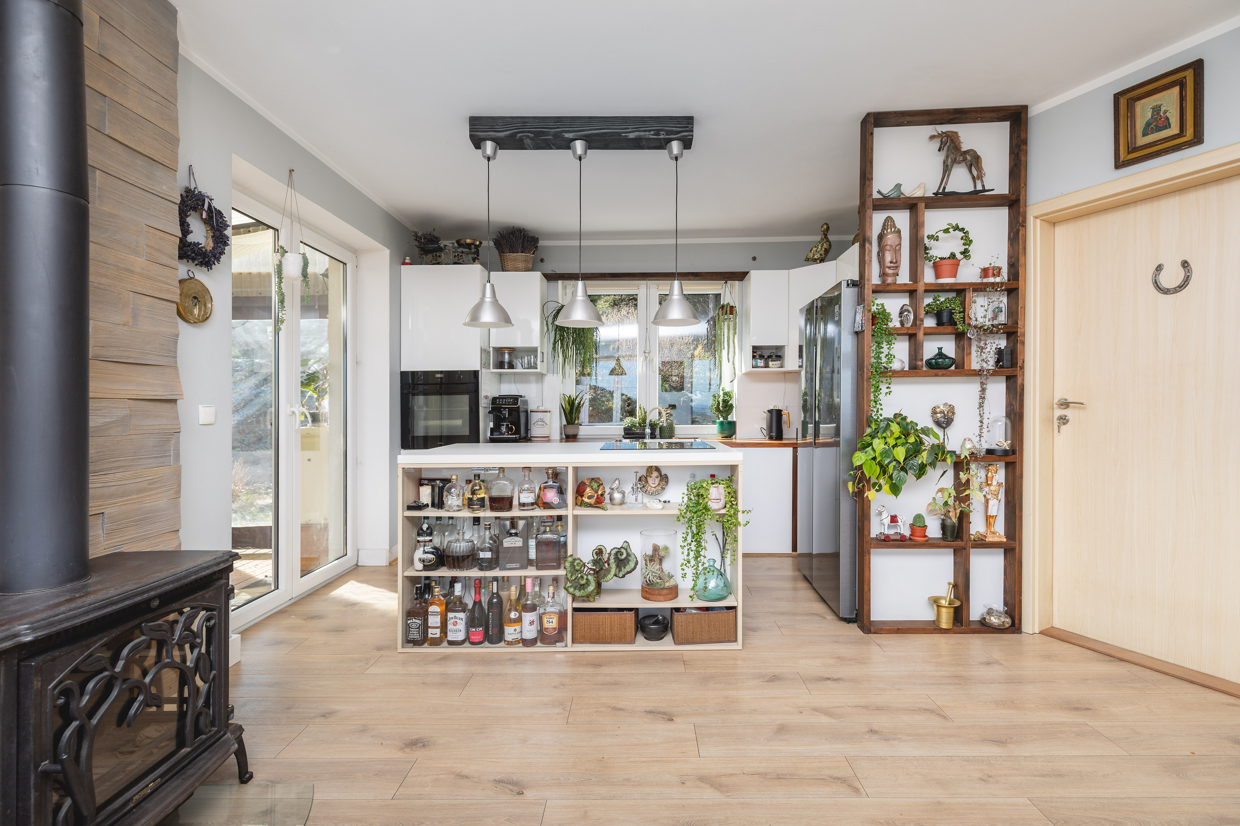 ✔ Ogrzewanie gazowe – system podłogowo-grzejnikowy, dodatkowo w salonie nowoczesny kominek wolnostojący V generacji, zgodny z obowiązującymi normami. ✔ Darmowa woda ze studni głębinowej, filtrowana w kotłowni. Pojemność zbiornika ciśnieniowego – 200 L. ✔ Ścieki odprowadzane do przydomowej oczyszczalni drenażowej (opróżnianie raz w roku). ✔ Okna PCV, podłogi pokryte panelami, a w łazienkach, wiatrołapie i kotłowni – terakota.