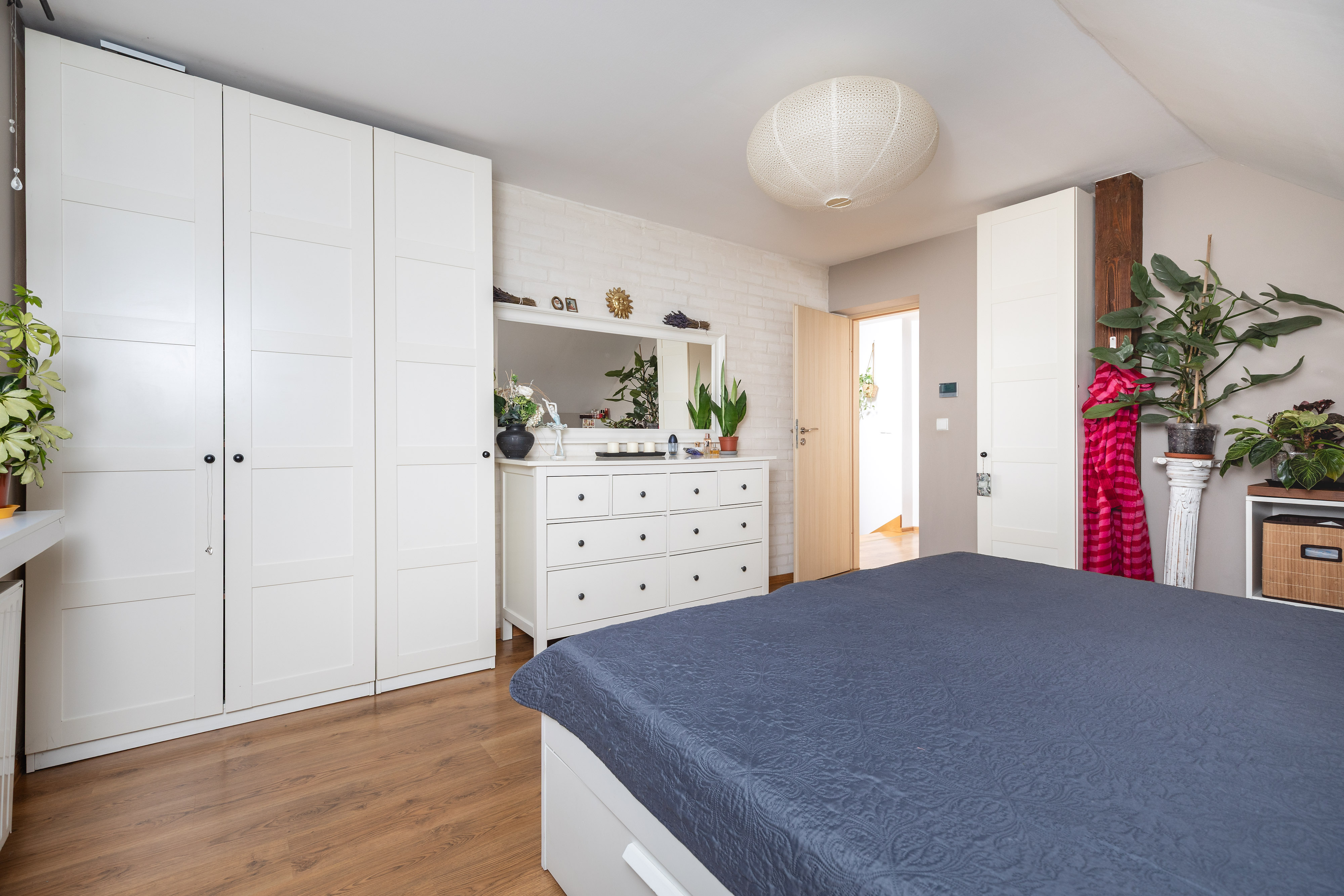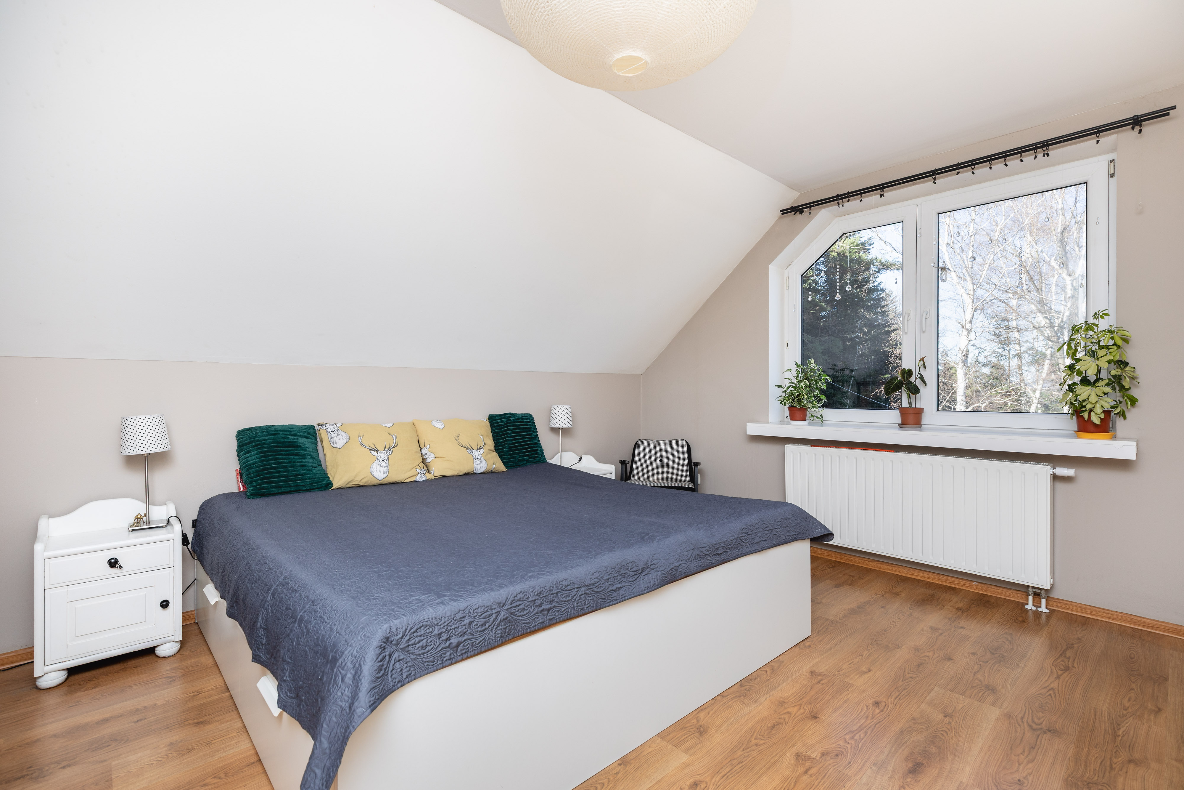 • Piętro: cztery duże sypialnie oraz druga łazienka z wanną.