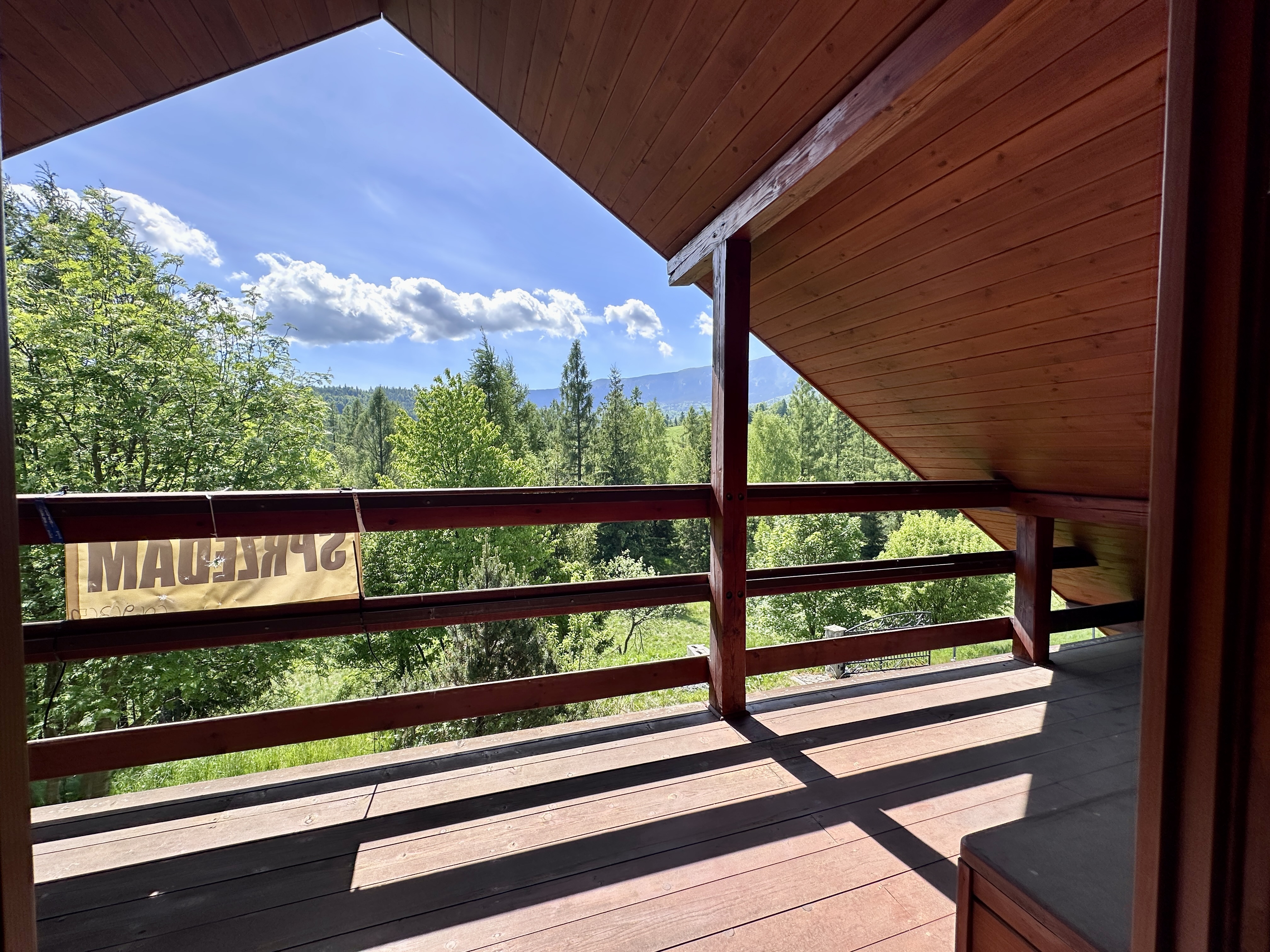 Dopełnieniem przestrzeni są dwa wyjątkowe miejsca do wypoczynku: zadaszony taras na parterze oraz balkon na piętrze – oba z malowniczym widokiem na góry. To idealna przestrzeń, by cieszyć się ciszą, naturą i spokojem, nie wychodząc z własnego domu.