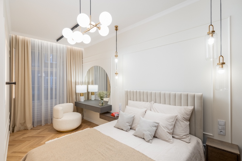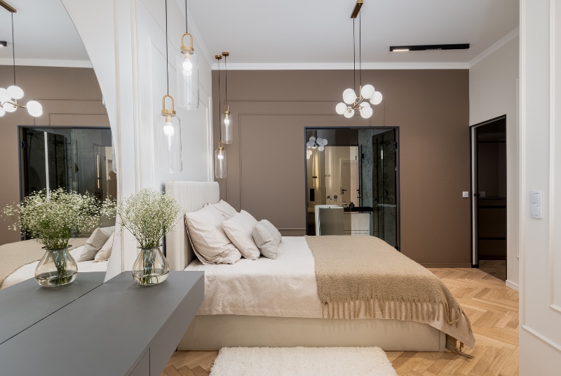 - umeblowana sypialnia Master z łóżkiem 180X200, z prywatną łazienką oraz garderobą