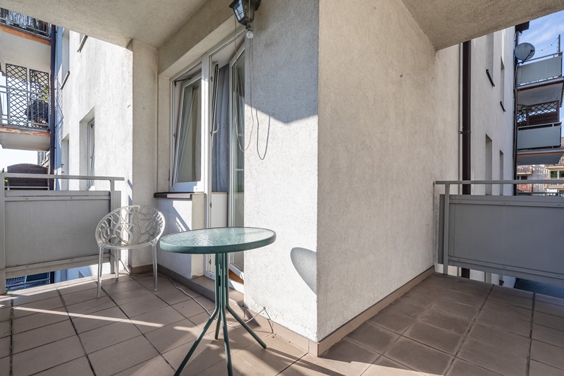 -Apartament z 2 sypialniami, salonem z aneksem kuchennym łazienką i komunikacją. Do mieszkania przynależy balkon z widokiem na zieleń.