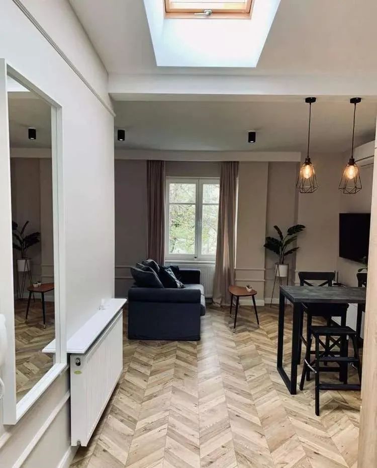 42m2 typu STUDIO, składa się z aneksu kuchennego ( meble w zabudowie, zlewozmywak, zmywarka, piekarnik, płyta indukcyjna, okap) dużego salonu / sypialni (możliwość dorobienia osobnej ścianki) przedpokoju i łazienki. Jest urządzone i wykończone z dbałością o każdy szczegół. Ogrzewanie II funkcyjnym piecem gazowym i również klimatyzacja. Niski czynsz administracyjny 400 zł. Mieści się na IV piętrze (na chwilę obecną brak windy) Historia kamienicy sięga lat 1900-1901 a projektantem był jeden z najsłynniejszych architektów w międzywojennym Krakowie - Beniamin Torbe. Sama kamienica przeszła gruntowny remont w latach 2019-2022. Apartament jest zlokalizowany od samego serca kamienicy, przez co nie odczuwamy w nim głośnych tramwajów, ani samochodów. Apartament posiada odrębną księgę wieczystą. Apartament był wynajmowany na długi termin, głównie dla klientów biznesowych, lub studentów zagranicznych. Doskonała lokalizacja i dojazd w każdym kierunku miasta.