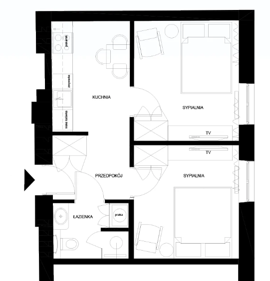 36,80 m2, mieści się na IV piętrze. Składa się z oddzielnej kuchni, dwóch pokoi, przedpokoju i stylowej łazienki. Wykończone „pod klucz” w wysokim standardzie z dbałością o każdy szczegół.