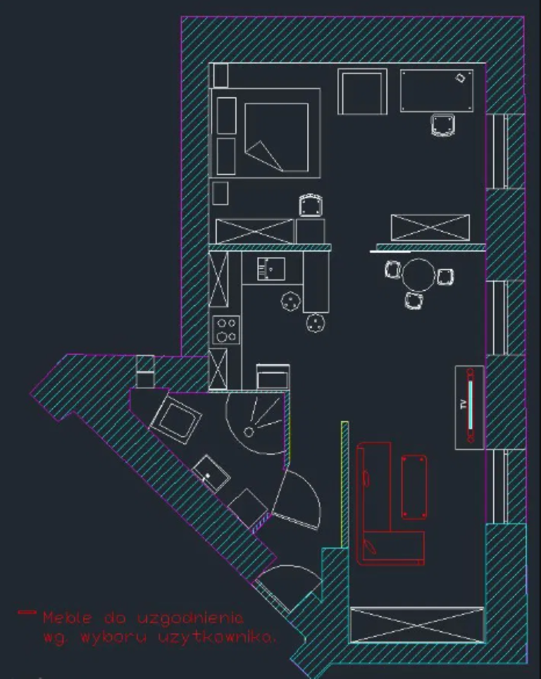 Apartament jest wyposażony w meble w sypialni, zabudowę kuchenną z AGD – piekarnik i płytę indukcyjną, lodówkę, zmywarkę i szafę z drzwiami przesuwnymi o szerokości 2.4m. Meble i sprzęty są nowe i na gwarancji producentów. Mieszkanie świeżo po generalnym remoncie (podłogi, osprzęt, ściany, meble urządzenia - nowe) nie eksploatowane gotowe do użytku. Ogrzewanie etażowe -dwufunkcyjny piec gazowy /nowy/ z zamkniętą komorą spalania. Opłaty : fundusz eksploatacyjny – 169,80 zł + fundusz remontowy 144,66 zł – razem 314,46 zł
