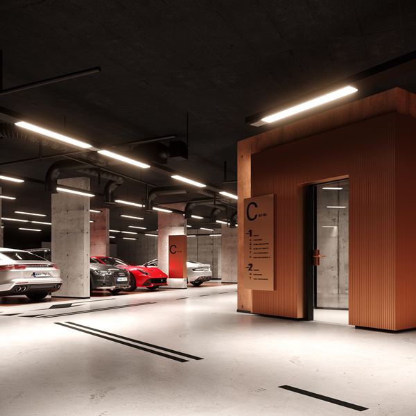 Ładowarki elektryczne i rowerowania w garażu, a nawet myjnia.