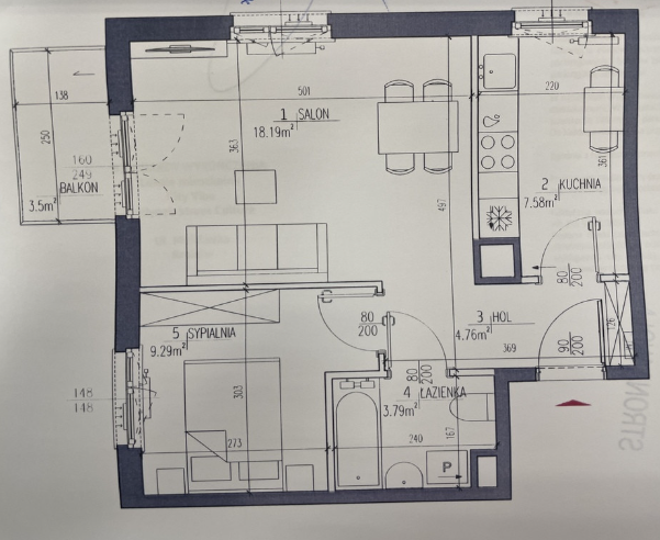 Płaszów / ul. Myśliwska 45m2, 3 pokoje, 1 piętro, balkon