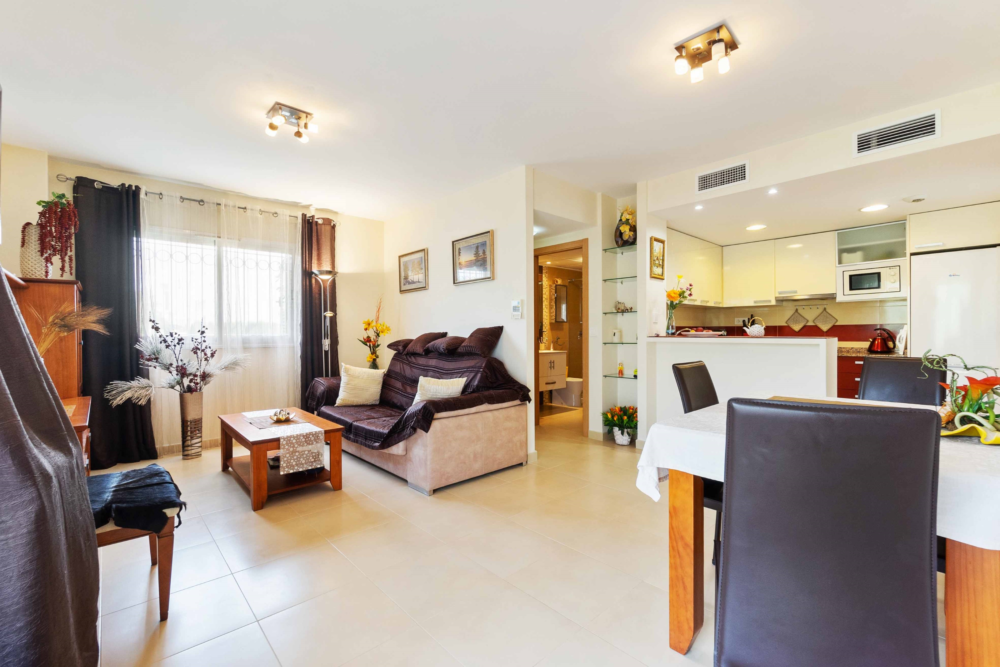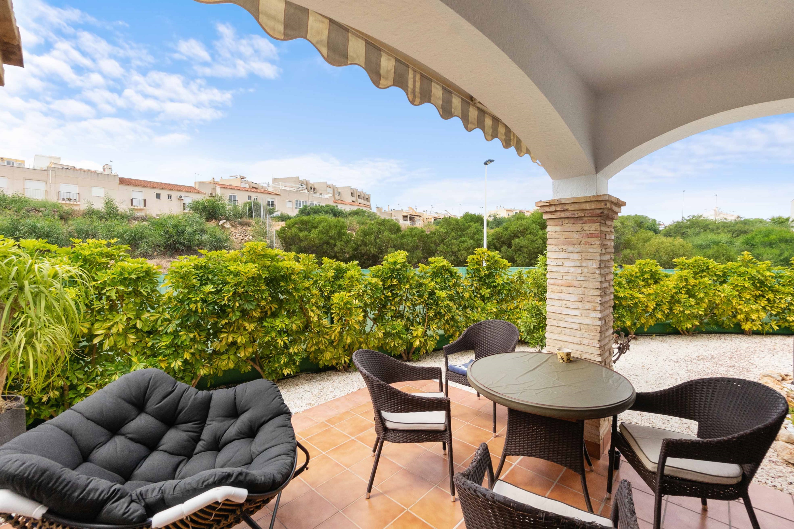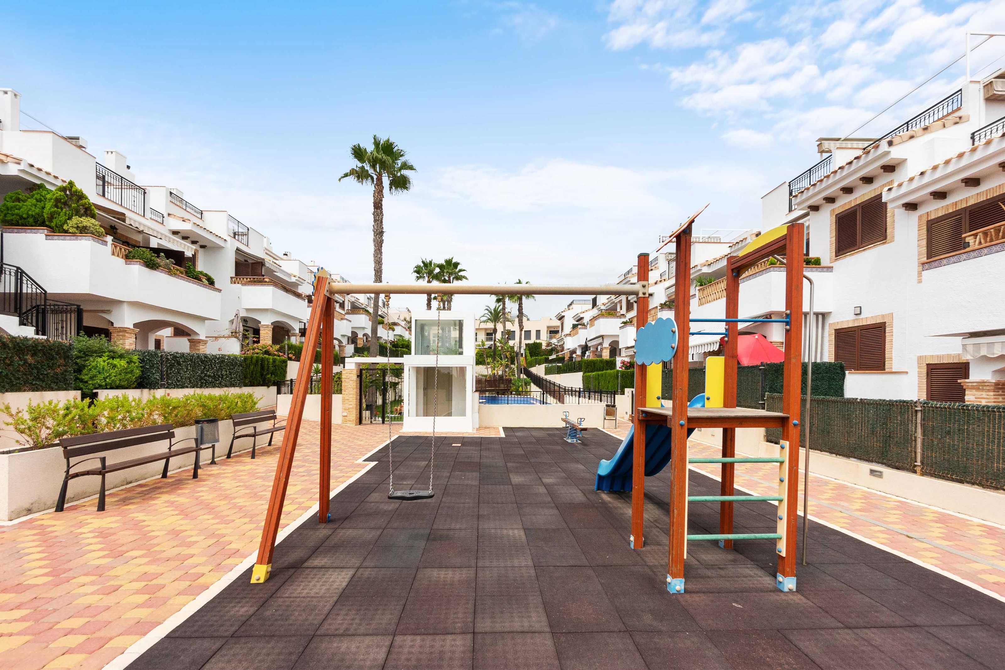 Jasne mieszkanie w La Mata, znajduje się w Residencial Azul Beach. Rozłożony na 75m2, składa się z 2 sypialni i łazienki. Przestronny salon-jadalnia z aneksem kuchennym i niesamowitym tarasem z wyjściem na ogród o łącznej powierzchni 63m2. Dzięki wspaniałej orientacji na południe można cieszyć się godzinami słońca i dobrą pogodą w różnych pokojach domu. Ponadto w kompleksie mieszkalnym znajduje się wspólny basen, plac zabaw i ogród osiedlowy.