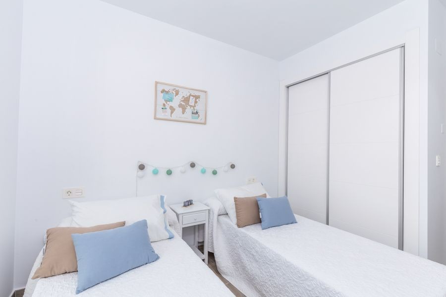 -Opancerzone drzwi główne o wysokim stopniu bezpieczeństwa z 5 punktami zabezpieczenia. -Białe przesuwane okna i rolety Climalit w całym domu z wyjątkiem łazienek. -Wszystkie sypialnie mają wbudowane szafy. -Gładka farba z tworzywa sztucznego na białych ścianach i sufitach. - Meble kuchenne dolne i meble pionowe, które zakrywają grzejnik. System otwierania bez uchwytów. Blat z kompaktowego kwarcu. Zawiera ozdobny okap kuchenny ze stali nierdzewnej i zlew ze stali nierdzewnej. - Wstępna instalacja kanałów klimatyzacyjnych w całym domu. - W zestawie nagrzewnica powietrza (system energii odnawialnej). - miejsce parkingowe.