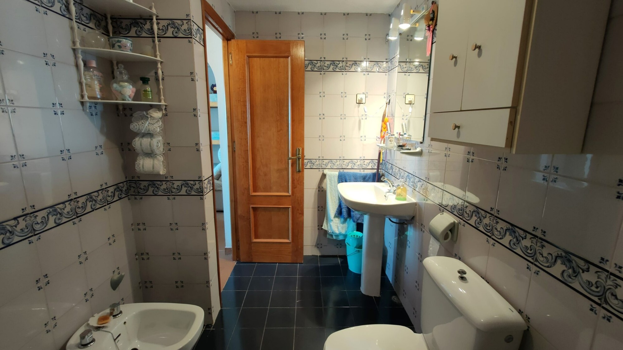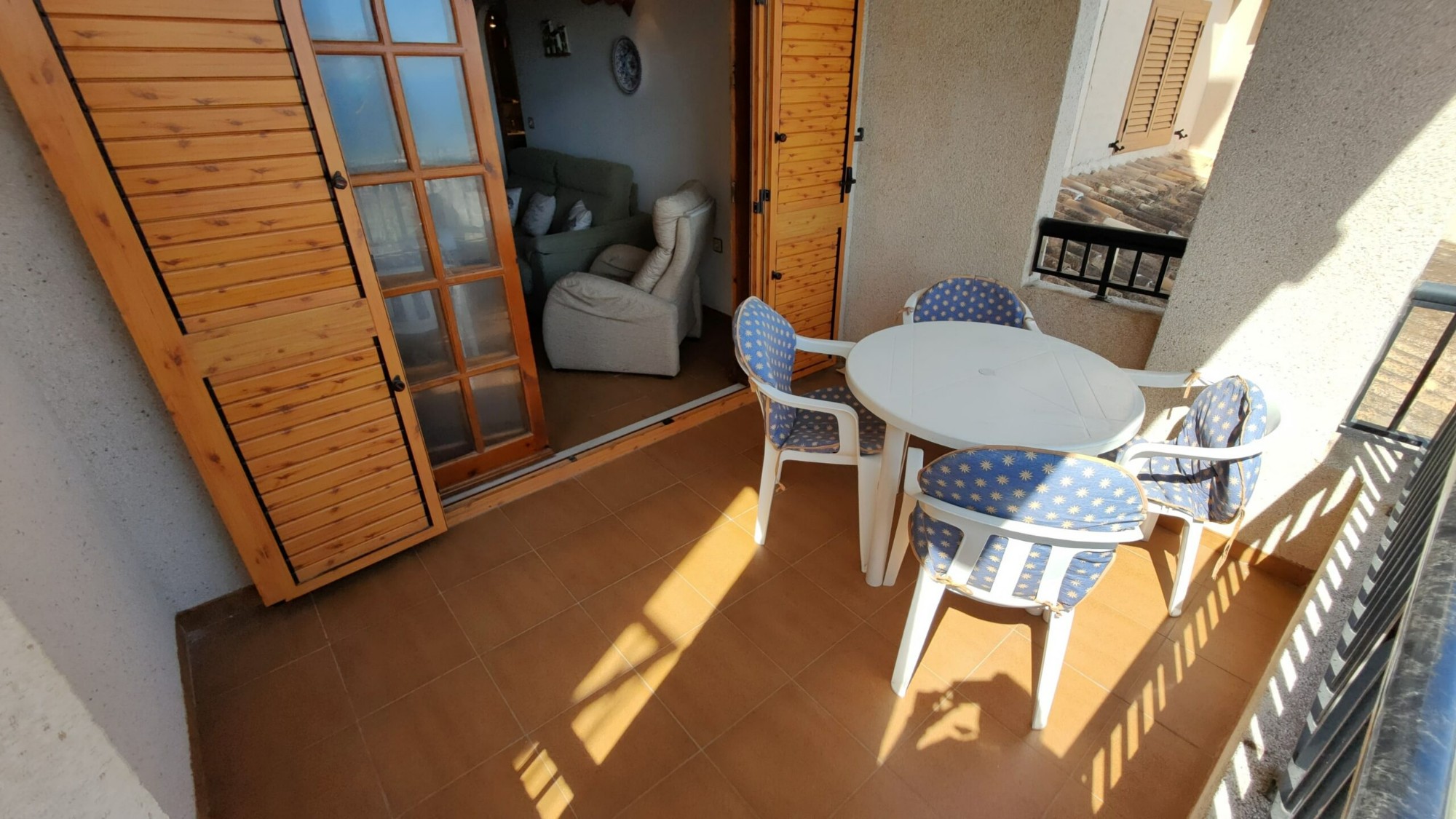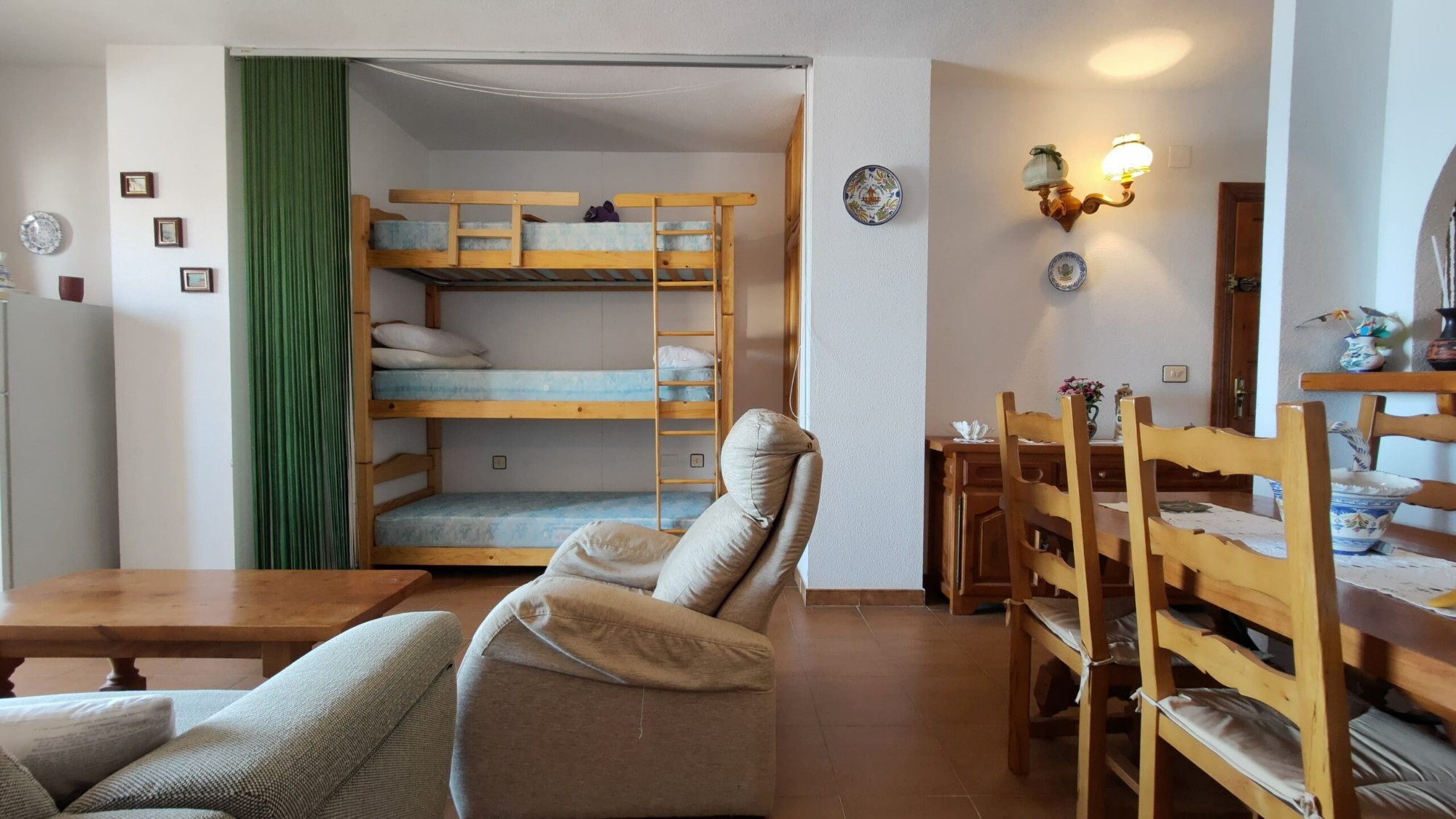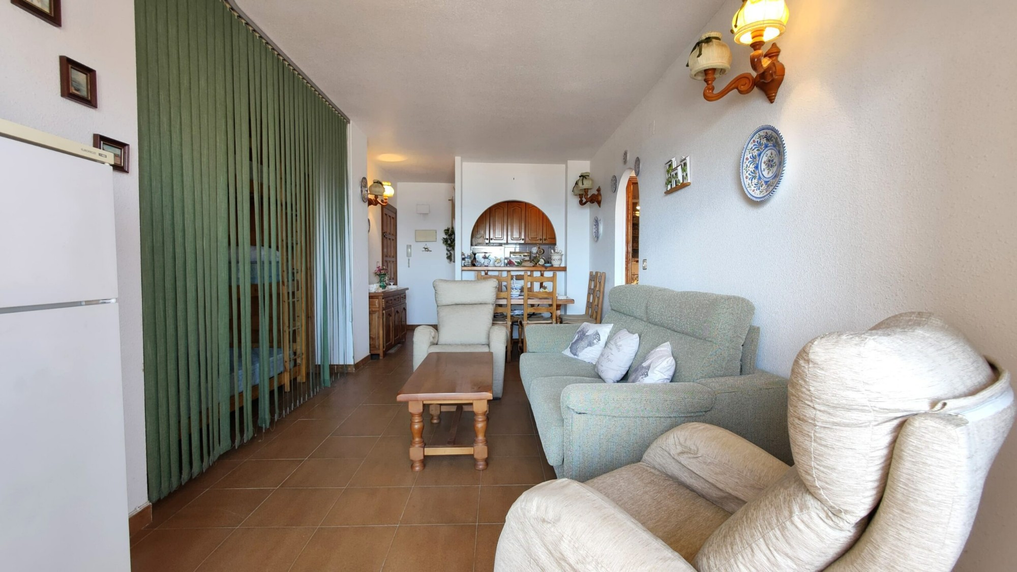 Ten apartament na 5. piętrze został bardzo dobrze utrzymany i oferuje 1 dużą sypialnię z wbudowaną szafą, z której można podziwiać piękny widok na morze z łóżka, 1 łazienkę z wanną i oknem, częściowo niezależną kuchnię z oknem, przestronną pokój dzienny z jadalnią oraz wydzieloną częścią, w której właściciele umieścili trzyosobowe łóżko piętrowe. I wreszcie, co nie mniej ważne, duży taras z przepięknym, niezakłóconym widokiem na morze i plażę La Mata!