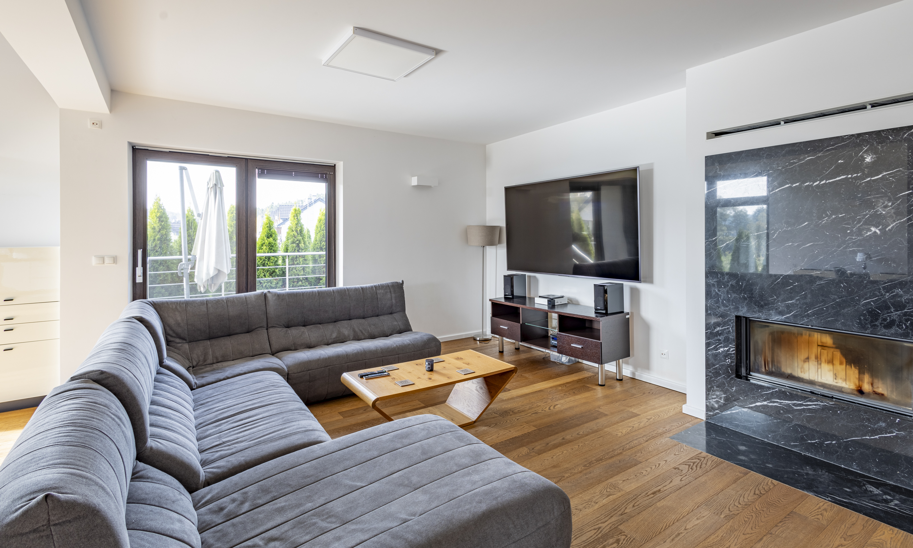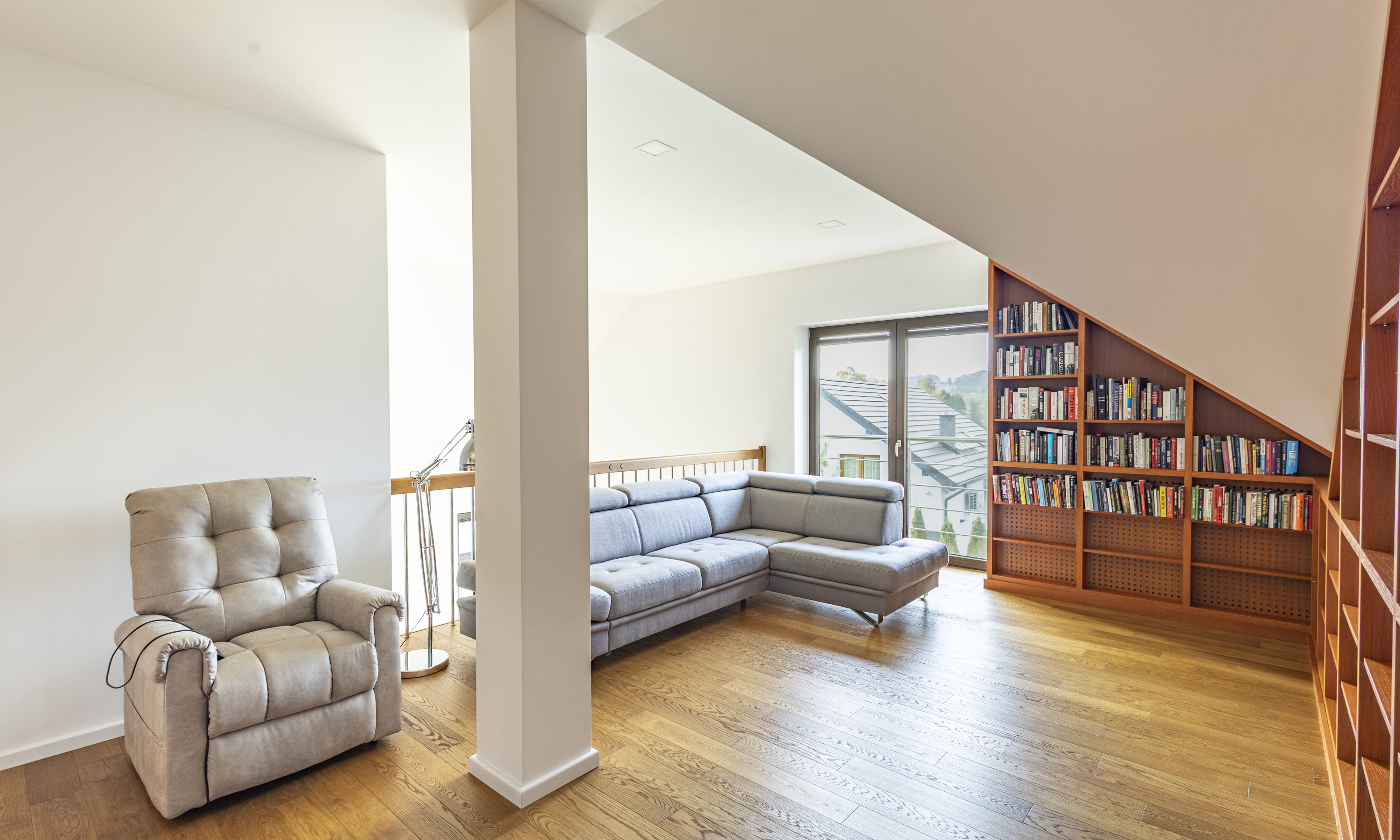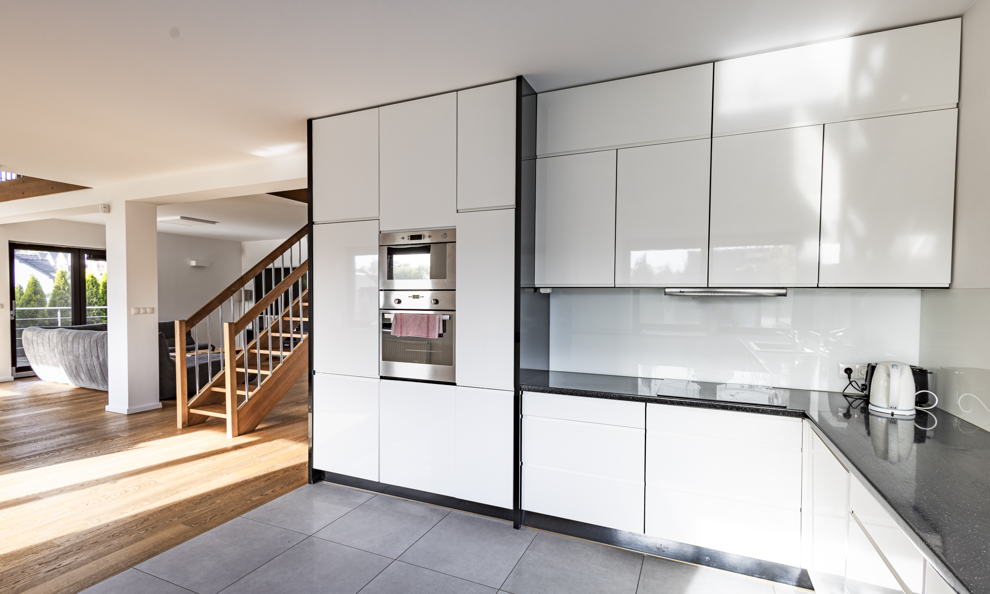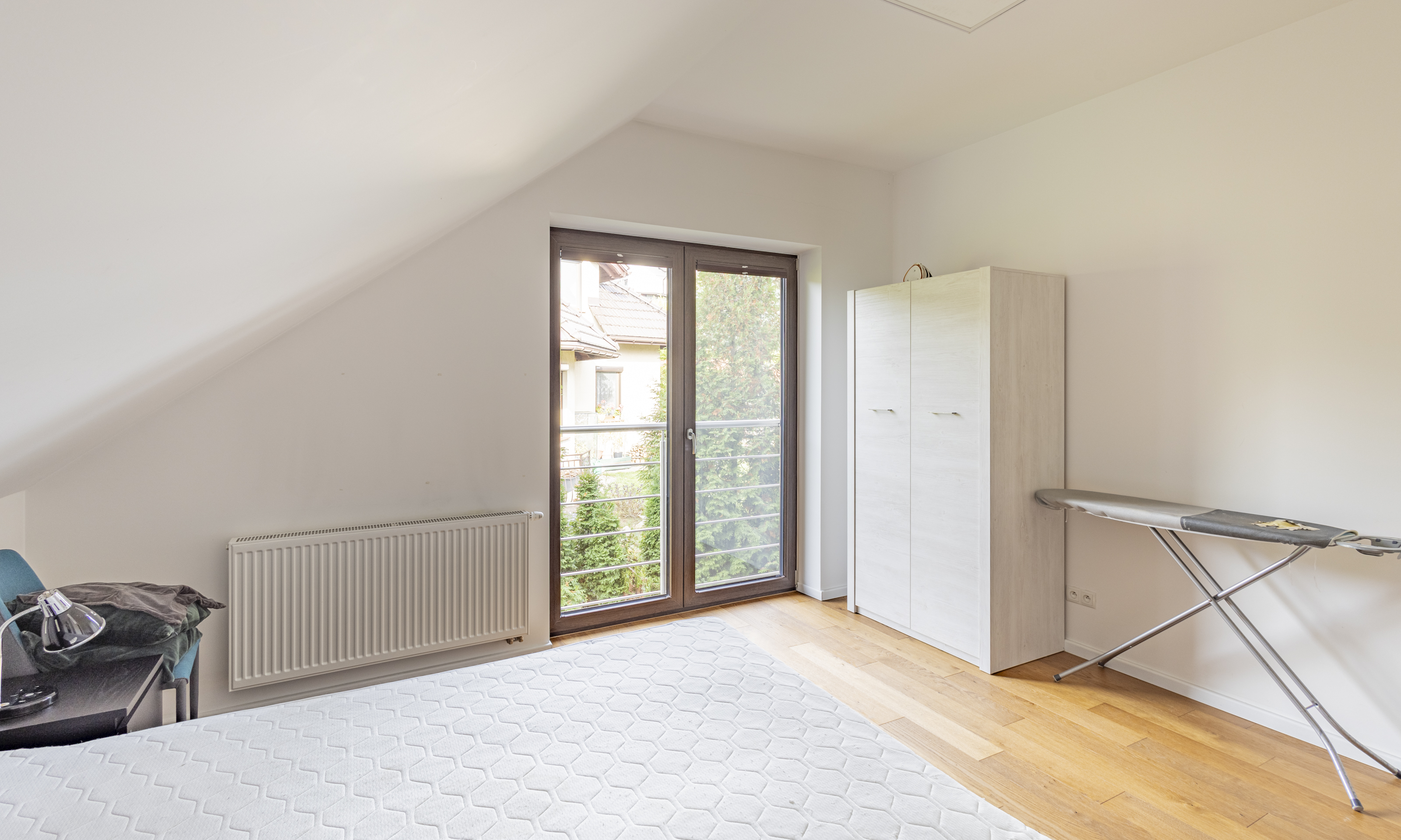 Dom w stanie do wejścia. Na podłodze wysokiej klasy drewniane deski. Stolarka drzwiowa oraz schody wykonane z litego drewna.