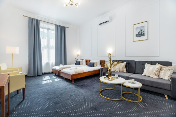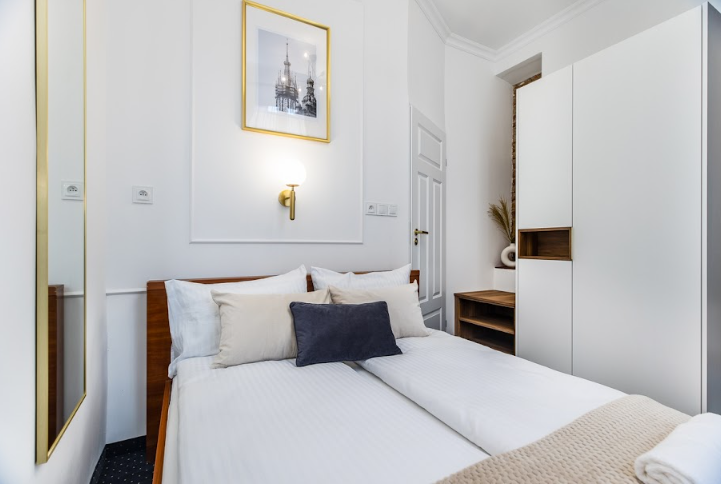 Stan mieszkań bardzo dobry zostały w nich wykonane następujące prace: nowa instalacja elektryczna, nowy osprzęt elektryczny, gładzie i sztukateria, lampy, nowe drzwi do łazienek z dekorami, odmalowanie oryginalnych drzwi lokalowych i pokoi + wygłuszenie pianką, instalacja klimatyzacji w każdym pomieszczeniu, instalacja teletechniczna (internet/ telefon/ domofon) nowa instalacja kamer w lokalach i częściach wspólnych online, przygotowane i założenie wykładziny hotelowej na całości, nowa armatura w łazienkach i nowe silikony, nowe grzejniki w łazienkach, prace malarskie na całym obiekcie