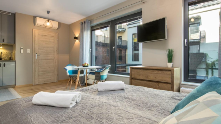 OFERUJEMY PAŃSTWU DO WYNAJMU klimatyczne mieszkanie na krakowskim Kazimierzu przy ul. Św. Wawrzyńca w nowym apartamentowcu. Mieszkanie o łącznej powierzchni 53,70m2, podzielone na dwa mini apartamenty o powierzchni po 25m2, mieszczące się na się na I piętrze w IV piętrowym ekskluzywnym budynku. Apartamenty składają się z aneksów kuchennych, sypialni i łazienek z prysznicami, łączy je wspólny korytarz. Fajnie wykończone wnętrza, klimatycznie zaaranżowane, wyposażone ( nie ma pralek, możliwość zrobienia wspólnej pralni w korytarzu ) Nowe okna aluminiowe, drzwi antywłamaniowe, na podłogach drewniana deska. Wszystkie media - woda, kanalizacja, prąd. Ogrzewanie MPEC. Czynsz administracyjny za całość 905 zł ( z ogrzewaniem) Mieszkanie idealne jako inwestycja pod wynajem krótko, bądź długoterminowy. Bliska okolica Rynku Głównego, Bulwarów Wiślanych. Doskonała lokalizacja i dobry dojazd w każdym kierunku miasta. Zapraszam na prezentacje.
