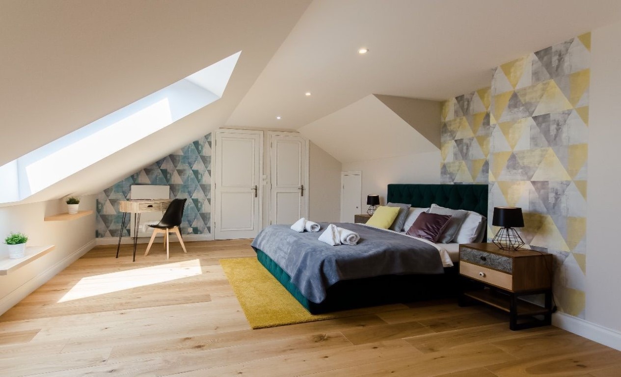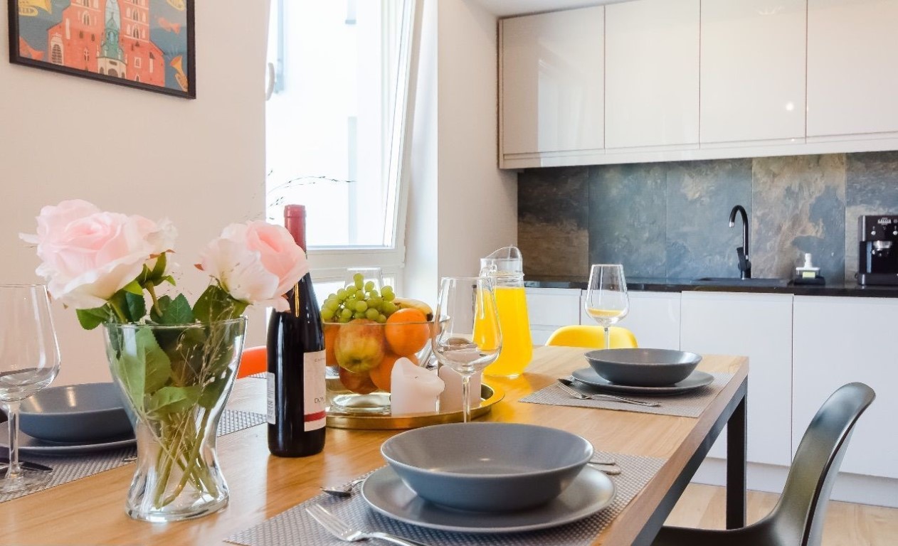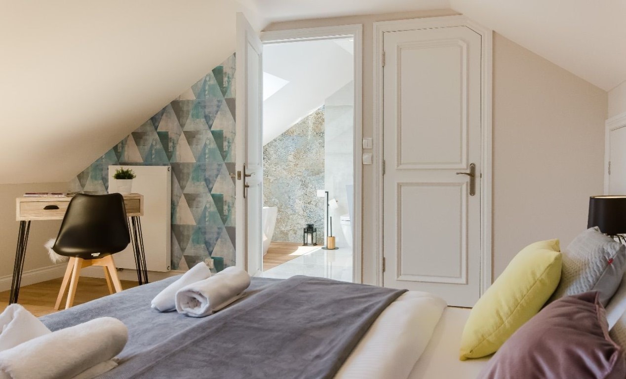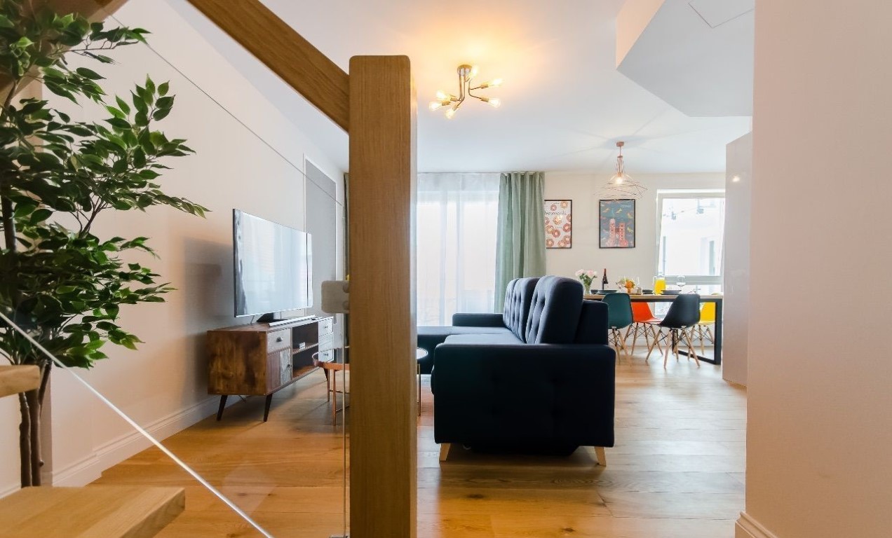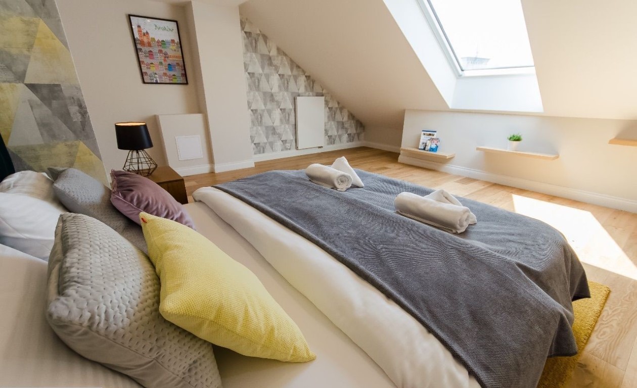 OFERUJEMY PAŃSTWU DO SPRZEDAŻY prestiżowy APARTAMENT na krakowskim Kazimierzu, zajmuje 2 ostatnie piętra (4 i 5) kameralnego pięknego budynku z 2021 roku z doskonałymi widokami. W budynku tylko 41 mieszkań, całodobowa recepcja. Dwupoziomowe mieszkanie 3-pokojowe o powierzchni 79 m², posiada dwie osobne sypialnie (w tym jedna z łazienką i garderobą), 2 łazienki, salon z aneksem kuchennym, garderoba (nieurządzona), 2 balkony.