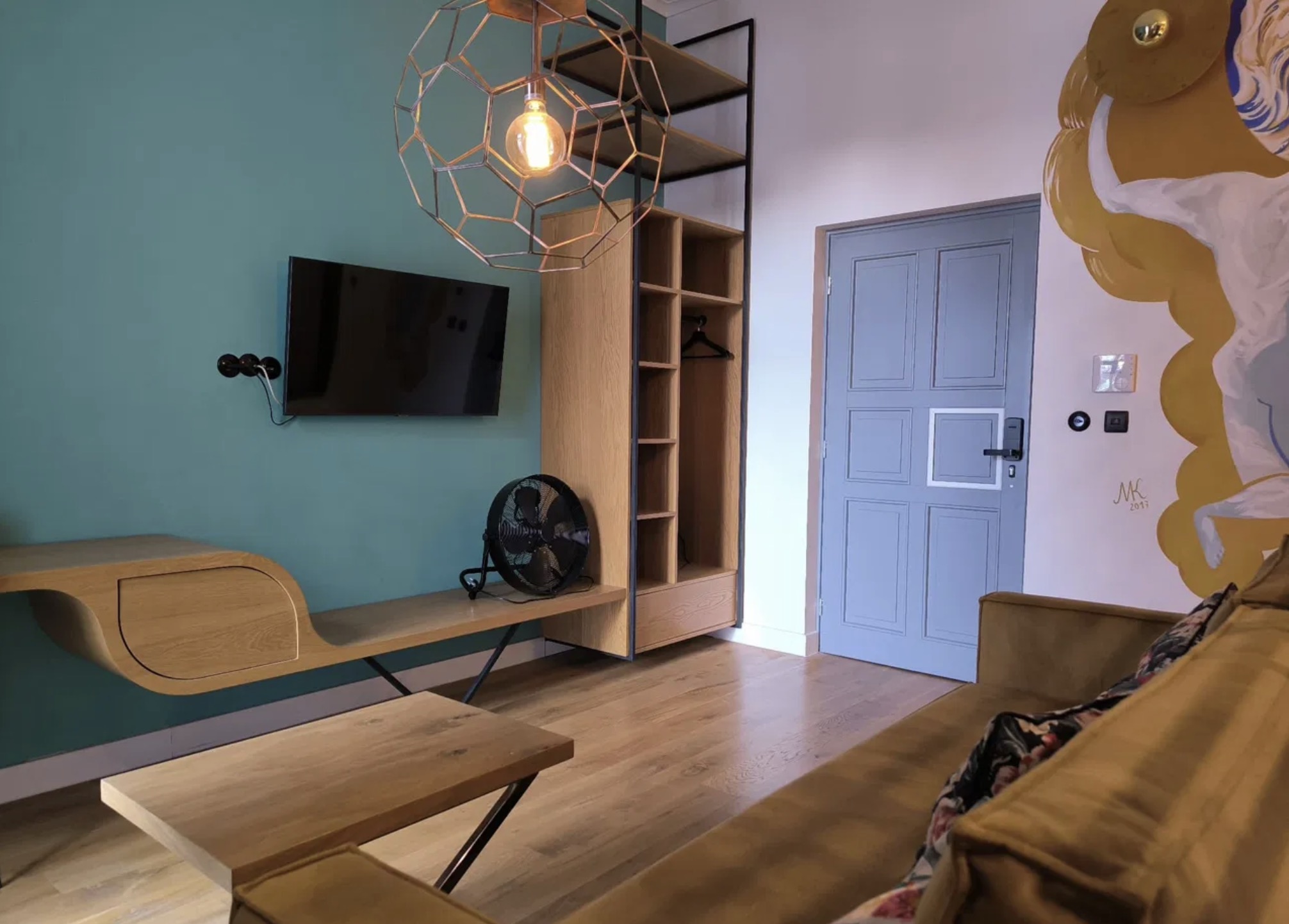 Apartament 2 o powierzchni 25 m2 stanowi jednopokojową przestrzeń zaprojektowaną w wysokim standardzie oraz z dbałością o unikalny design. Wnętrze zostało urządzone w sposób funkcjonalny i estetyczny, obok salonu znajduję się bezpośrednie wyjście na balkon.