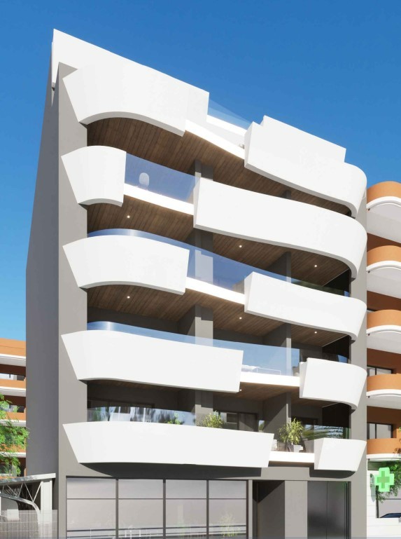 Nowopowstający budynek zaledwie 200 metrów od Playa de Los Locos w Torrevieja oferuje 15 apartamentów rozmieszczonych na 5 piętrach, ostatnie posiadają prywatne solarium, gdzie można odpocząć przy morskiej bryzie znad wybrzeża. Nieruchomości mają 2 lub 3 sypialnie oraz 2 łazienki.