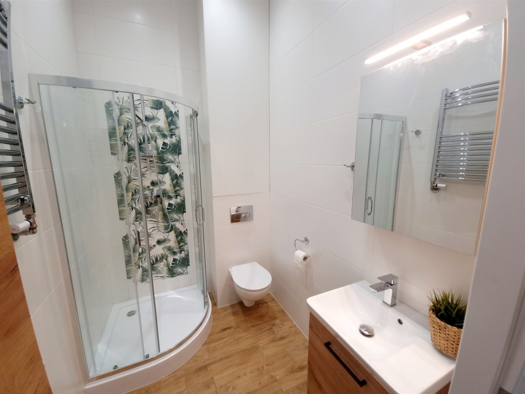 Na metraż ok. 50m2 wchodzi salon z aneksem kuchennym, osobna duża sypialnia, łazienka z prysznicem oraz przedpokój. Mieszkanie po generalnym remoncie, w pełni wyposażone w sprzęty RTV i AGD, na gwarancji. Dostępne od 1 września.