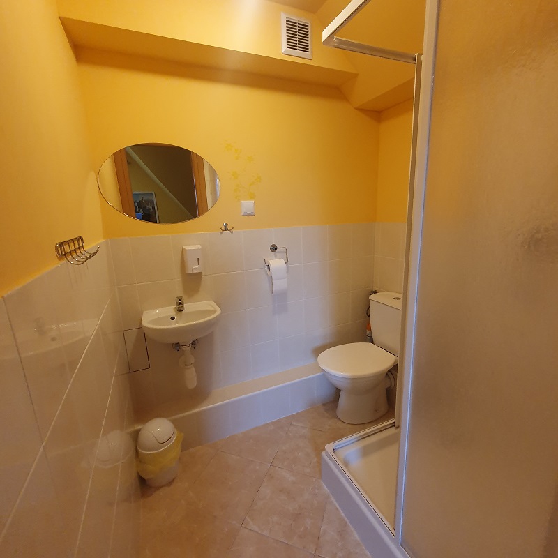 Piętro: pokój (dwuosobowy) z łazienką, pokój (czteroosobowy), sypialnia , wc, łazienka
